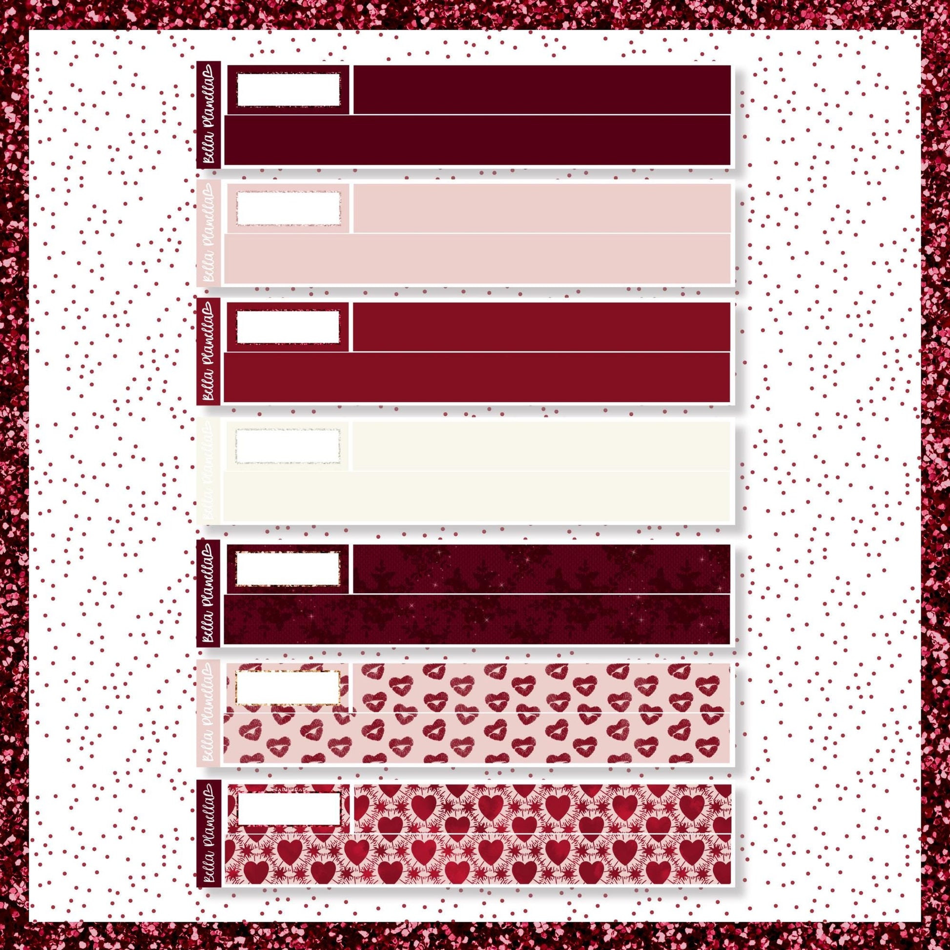 Full box stickers are 1.5"w x 1.9"h - these will fit the majority of standard vertical planners.