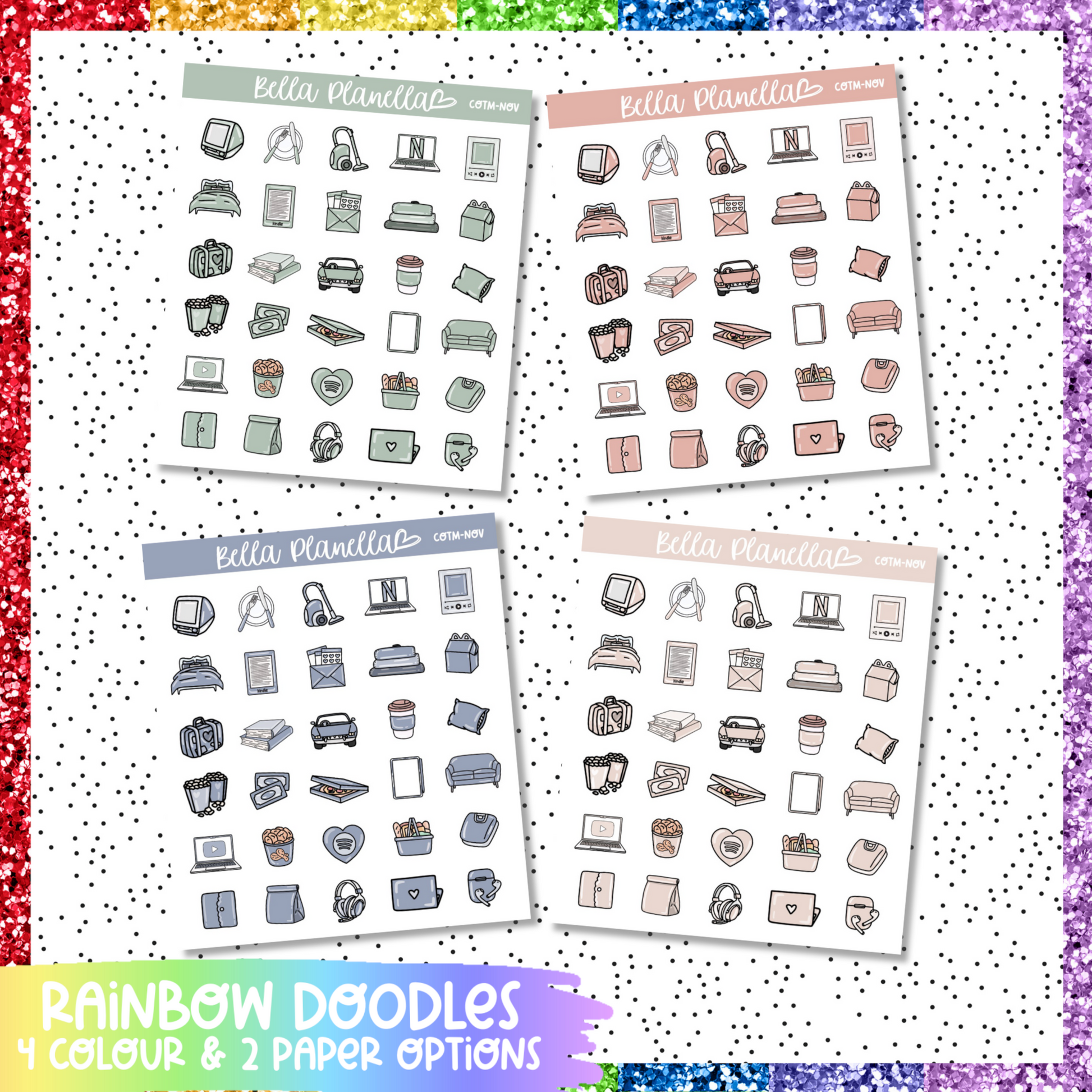 All sheets contain approx 30 stickers and are sized to fit inside our 1/4 boxes found in the weekly kits. Choose from 4 colour variations and 2 paper options!