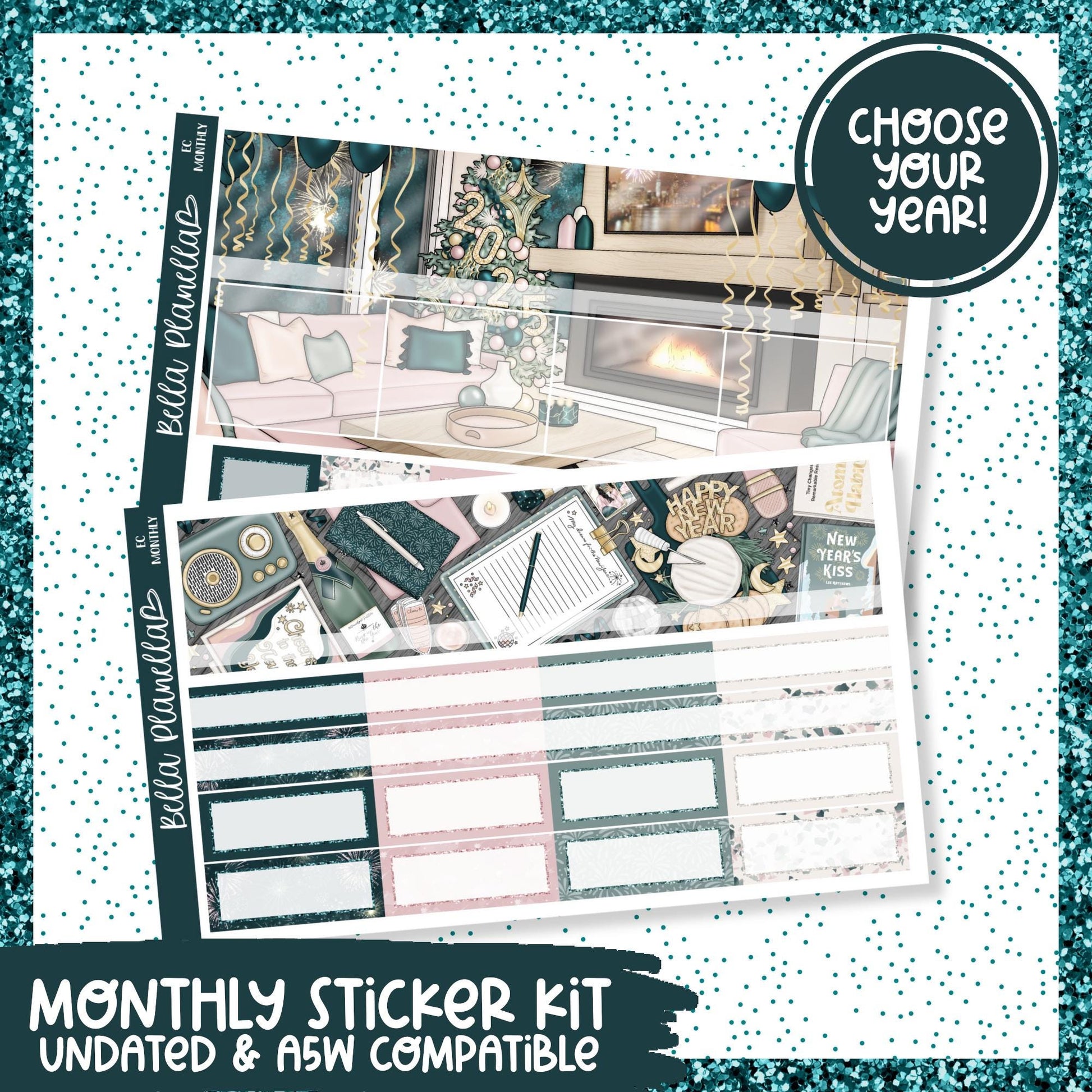 5 Page Undated Monthly Sticker kit with a Deco/Functional sidebar option and separate Days of the Week (for a Sun-Sat or a Mon-Sun start), numbers & deco.
